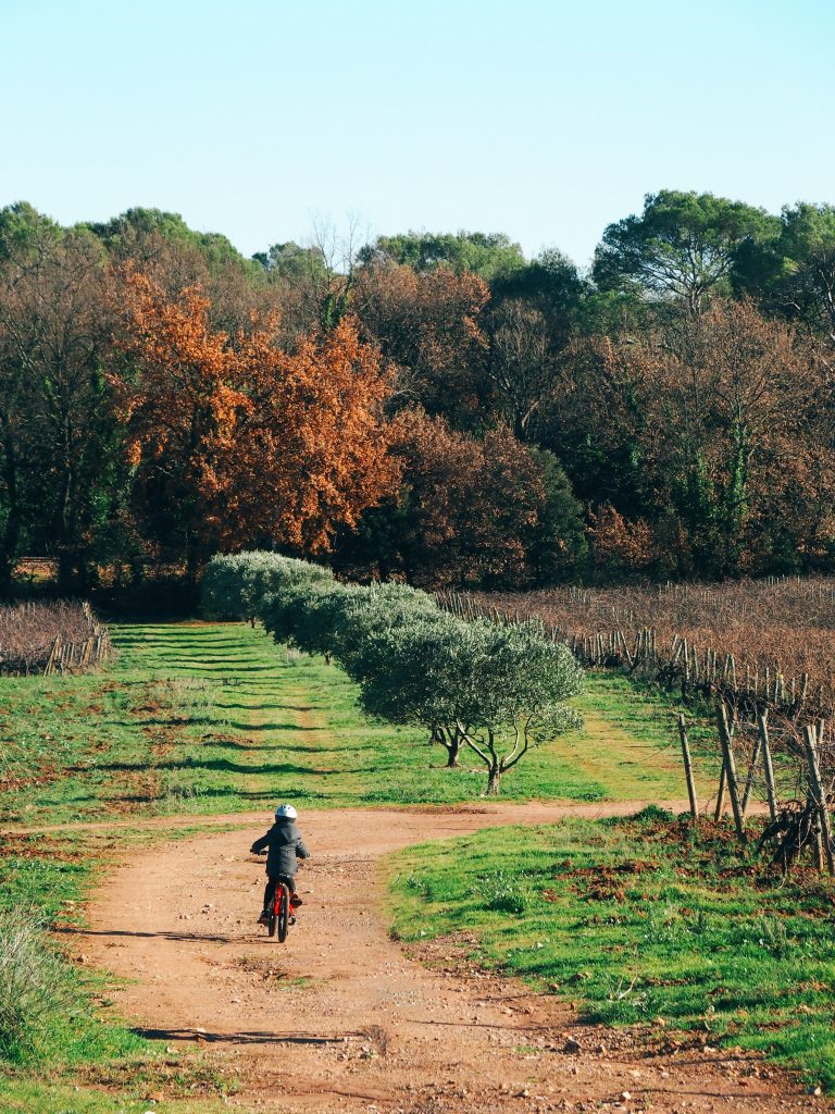 C’est un lendemain de Noël doux et doré que nous enfourchons nos vélos avec Maxence (6 ans) et ses cousins de 5 et 8 ans pour une petite escapade sur la “Vigne à Vélo”.